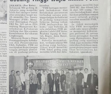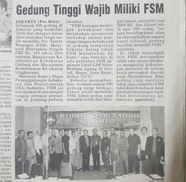 Sejak tahun 2017 Kepala Dinas Penanggulangan Kebakaran dan bencana Provinsi DKi Jakarta telah menggaungkan gedung bertingkat harus memiliki Fire Safety Manager. FSM yang dimaksud agar menjadi kepanjangan tangan dinas pemadam kebakaran untuk mencegah kebakaran di gedung bertingkat.