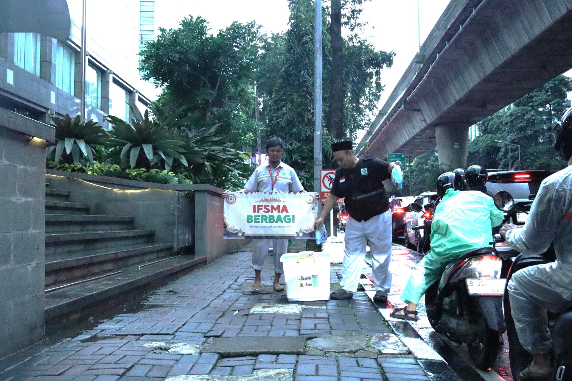 Kegiatan selama Ramadhan ini di tujukan pada para pengguna kendaraan roda dua yang terjebak macet di jalan. Pembagian di serahkan di Jl. Iskandarsyah Raya, Melawai, Jakarta Selatan.